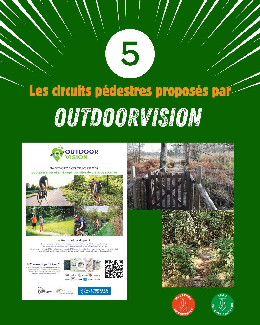 Grâce au site et à l’application Outdoorvision dont le Département de Loir-et-Cher est partenaire, accédez à une multitude de tracés GPX pour vos circuits de randonnée pédestre, de trail ou de VTT.